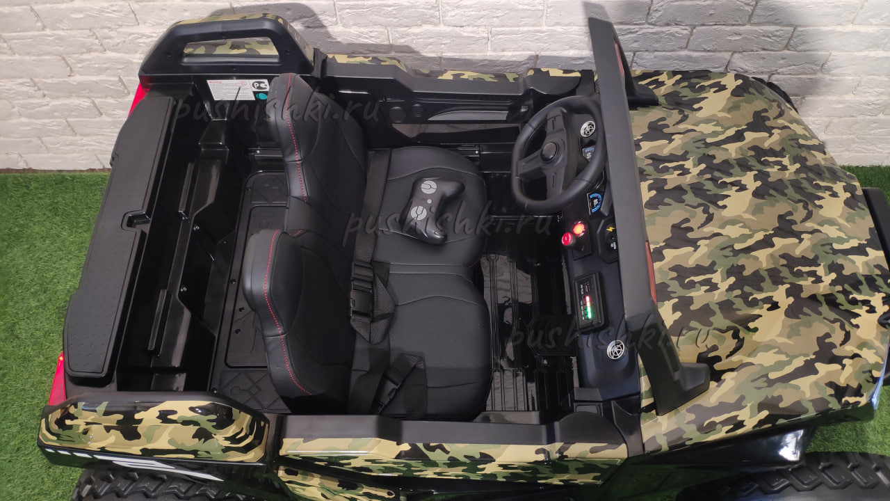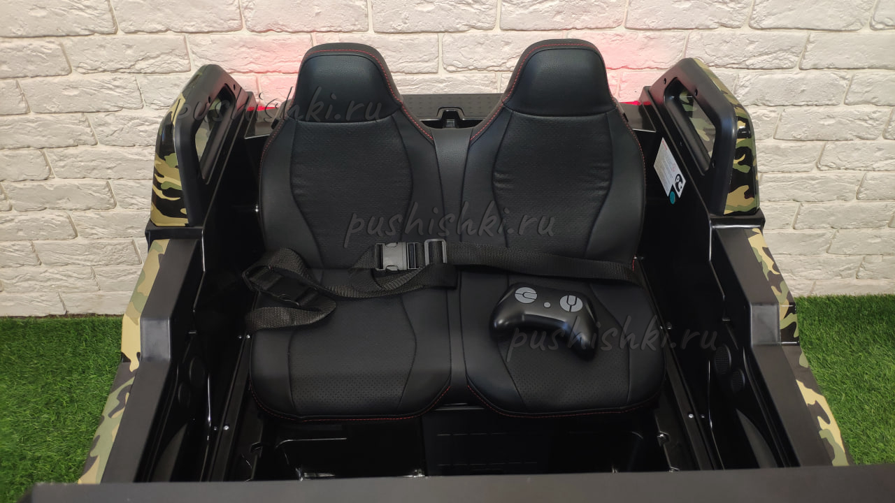- Сидение: 2-х местное, кожаное, ремень безопасности поясной - 2шт, сидение регулируется вперед/назад